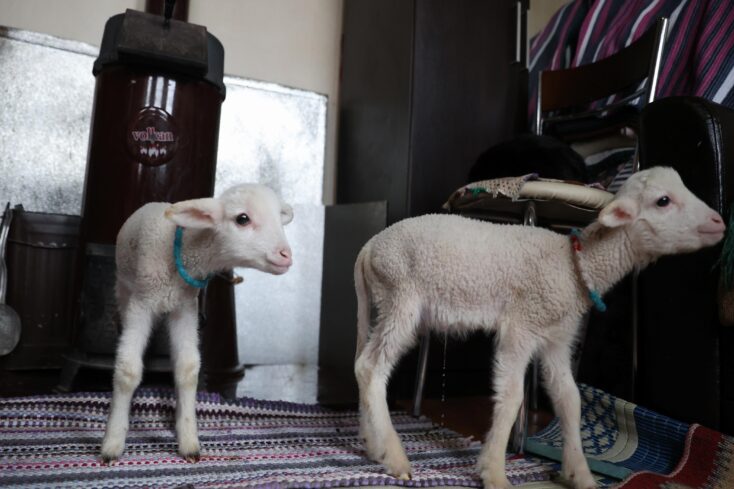 ÖZGÜN TİRAN – Kırklareli'nin Bayramdere köyünde küçükbaş hayvan besiciliği yapan Aynur Öztürk, doğum sonrası annesinin kabullenmediği ikiz kuzulara evinde bakıyor.
