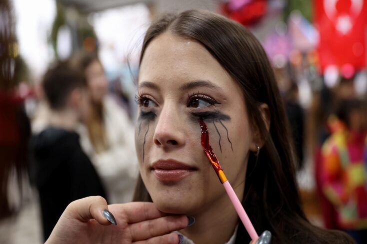 KIRKLARELİ (AA) – Kırklareli'nin Babaeski ilçesine bağlı Büyükmandıra beldesinde, teması “korkutmak” olan Balkan geleneği “Koleda” makyaj etkinliği ile başladı.