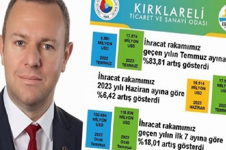 Erdoğan DEMİR / EDİRNE (İGFA) – Kırklareli merkezli firmaların 2023 Temmuz ayında 17,5 milyon doları aşan ihracat sayısına ulaştığını kaydeden KTSO Lideri Soner Ilık, 2023 yılı Temmuz ayında Kırklareli’den yapılan ihracatın bir evvelki aya nazaran yüzde 6,42 artış gösterdiğini söyledi.