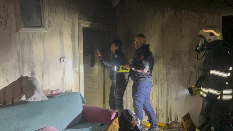 İtfaiye ekiplerince söndürülen yangında evde hasar oluştu.