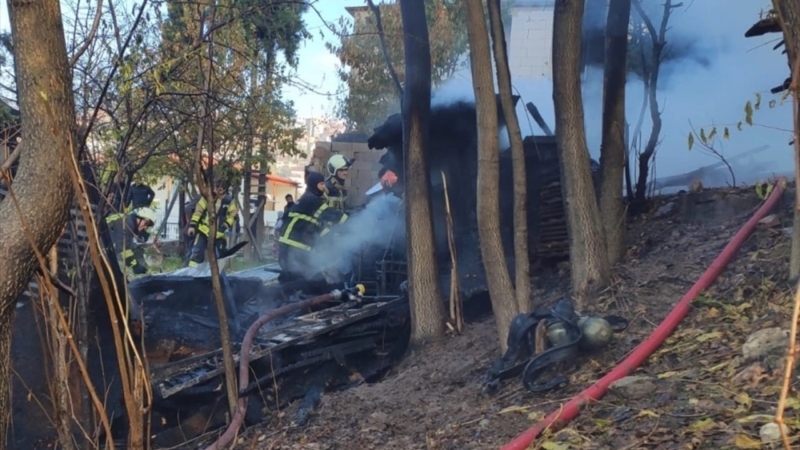 İtfaiye ekiplerinin çalışması sonucu söndürülen yangında, depo kullanılamaz hale geldi.