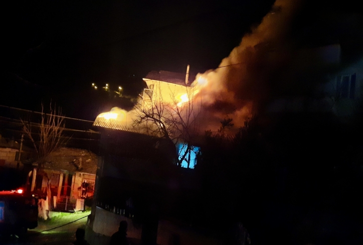 Yukarı Mahalle Seki Sokak'ta Mustafa A'ya ait 2 katlı evin çatısında henüz belirlenemeyen nedenle yangın çıktı.