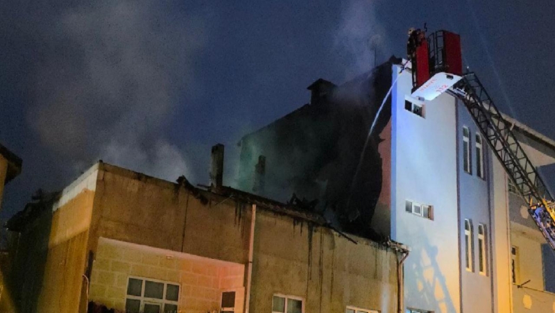 Kısa sürede büyüyen alevler, bitişikteki 3 katlı binanın çatısına da sıçradı.