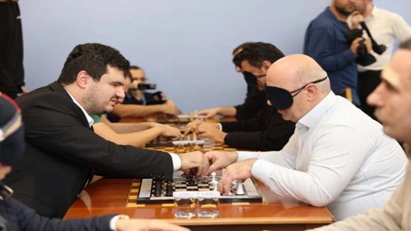 Yarışmanın açılışı, görme engelliler ile vatandaşların satranç mücadelesiyle başladı.