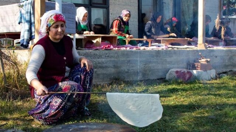 Etkinlik günü tirit olarak kullanılacak yufkalar, kadınlar tarafından özenle hazırlanarak muhafaza ediliyor.