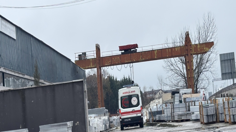 Ertuğrul Gazi Mahallesi Cumhuriyet Caddesi'ndeki bir mermer üretim tesisindeki vinçte çalışan İshak Yetim, şimdi bilinmeyen nedenle 7 metre yükseklikten yere düştü.