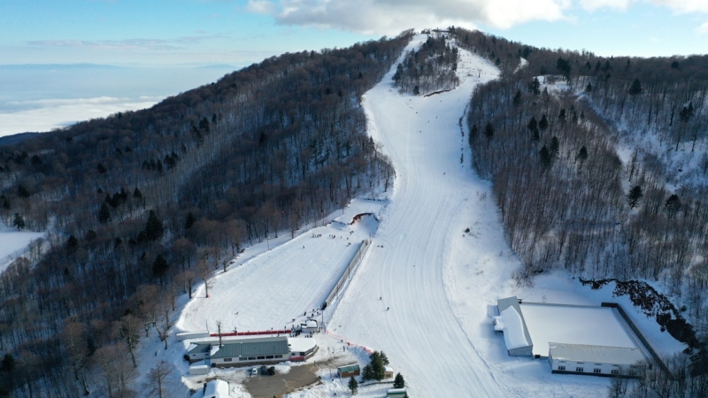 Türkiye’nin gözde kış turizm merkezlerinden Kocaeli’deki Kartepe kayak merkezi havadan görüntülendi.