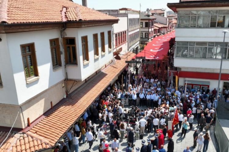 KONYA (İGFA) – Kapu Camii’nde kılınan Cuma namazının akabinde Bedesten içerisinde Konya Büyükşehir Belediyesi Mehter Grubu eşliğinde kortej yürüyüşü gerçekleştirildi. Yürüyüşün akabinde Konya Vilayet Müftüsü Ali Öge’nin yaptığı dua ve kesilen kurdeleyle “Tarihi Bedesten Alışveriş Günleri”nin açılışı gerçekleştirildi.