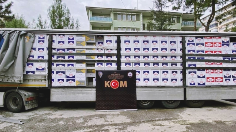 Kuzey Marmara Otoyolu İzmit geçişinde durdurulan araçta yapılan aramada, 8 milyon 300 bin makaron bulundu.