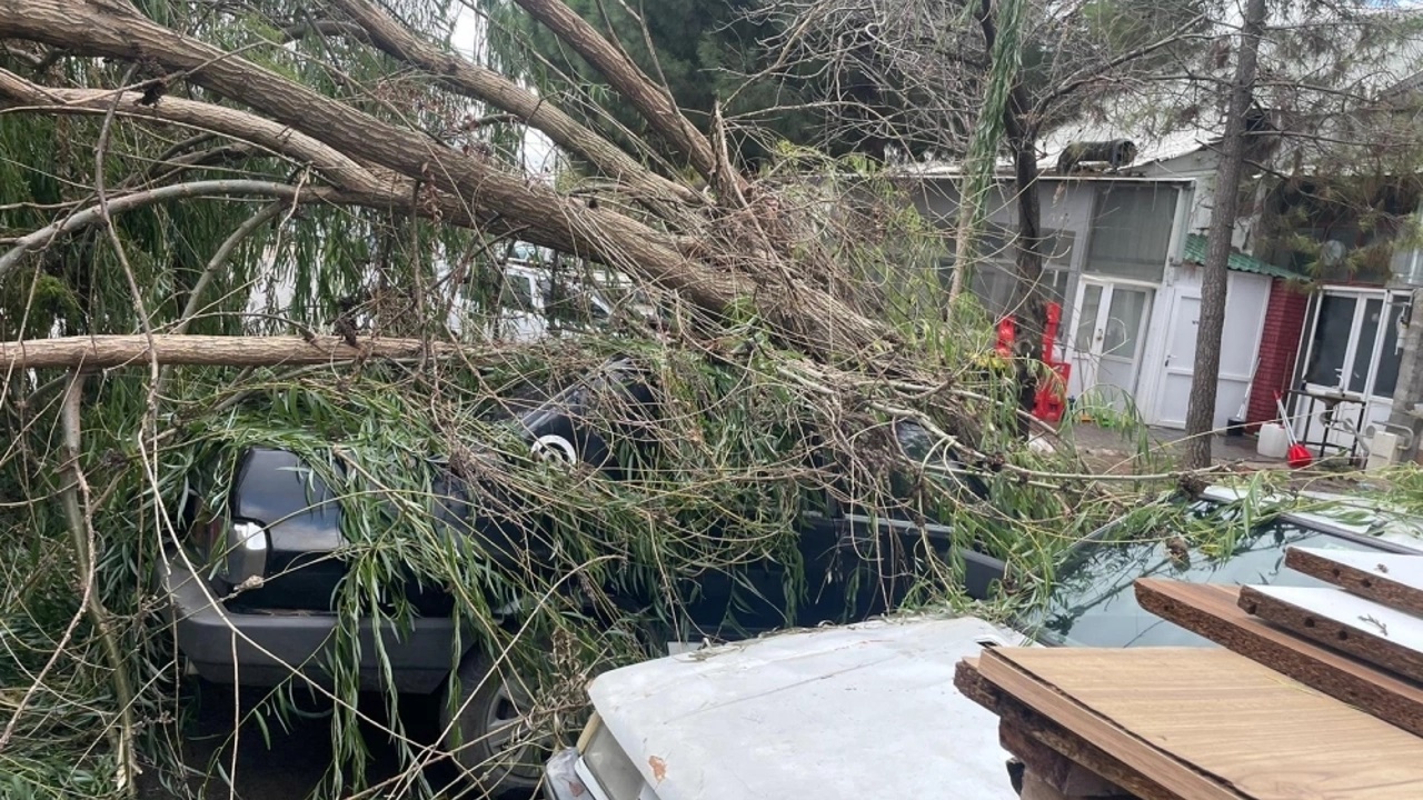 Devrilen ağaçlar nedeniyle park halindeki 3 otomobilde hasar oluştu.