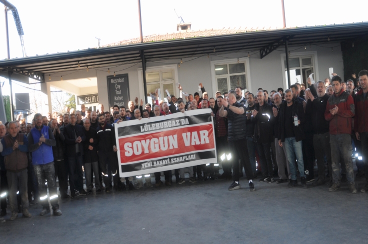 Yeni Sanayi Sitesi Düğün Salonunda toplanan esnaflar “Lüleburgaz'da soygun var” pankartı açıp, slogan attı.