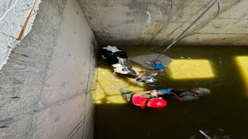Mersin’in merkez Toroslar ilçesinde, su deposuna düşen 2 inek itfaiye ekiplerinin çalışmasıyla kurtarıldı.