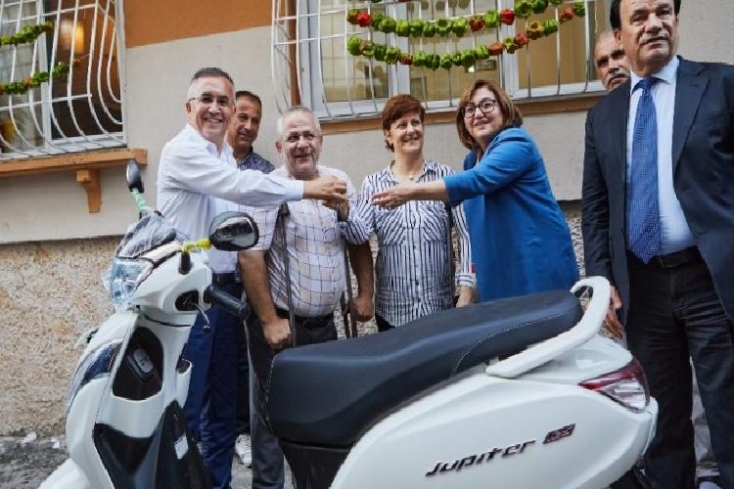 GAZİANTEP (İGFA) – Gaziantep’te Beyazlar Mahallesi’nde bulunan Malak Ailesi’nin konutunun önünden 4 Ağustos günü çalınan, kredi çekerek aldığı üç tekerlekli motosikletinin yenisini Gaziantep Büyükşehir Belediye Lideri Fatma Şahin ve Gaziantep Valisi Kemal Çeber getirdi.