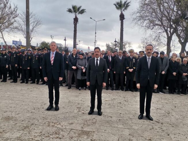 İskele Meydanı'ndaki Atatürk Anıtı önünde gerçekleştirilen törende, Mudanya Kaymakamı Ayhan Terzi ve Belediye Başkanı Deniz Dalgıç çelenk sundu.