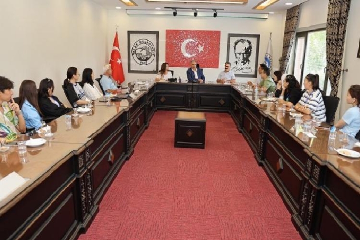 Atırav Halil Dosmuhammedov Üniversitesi’nden Türkçe öğrenmek için ülkemize gelen ve Erciyes Üniversitesi (ERÜ) Türkçe Öğretim Merkezi’nde eğitim alan 18 öğrenci ile ERÜ Türk Lisanı ve Edebiyatı Kısmı Öğretim Vazifelisi Dr. Lütfiye Güvenç, ERÜ TÖMER Müdürü Prof. Dr. Turgut Koçoğlu Lider Yalçın’a nezaket ziyaretinde bulundu.