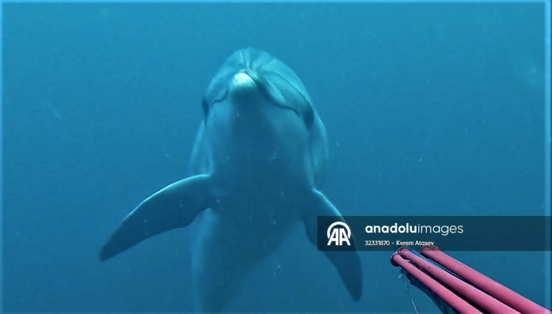 Lüfer ararken altından iki yunusun geçtiğini belirten Atasev, “Bundan 10 dakika sonra 15 metrede bir taşın yanında lüfer beklerken yunus geldi. Çok da sevimli bir hayvan. Hala denizlerimizde hayat var, canlılık var, çeşitlilik var. Bunları görüyoruz mutlu oluyoruz.” dedi.