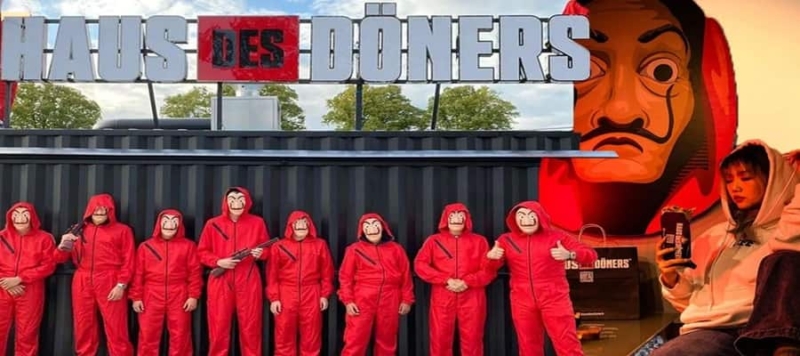 Almanya’da üç Türk girişimci, ünlü İspanyol yapımı dizi “La Casa de Papel”den ilham alarak “Haus des Geldes-Para Evi” adını taşıyan dönerci zinciri kurdu. “1 Cent’e döner” kampanyasıyla birlikte açılış gerçekleştirildi ve binlerce Alman, döner almak için kuyruğa girdi. Polis eşliğinde döner satışı gerçekleşti. Ancak, bu girişim şimdi mahkemelik oldu. Sözcü gazetesinin haberine göre, geçtiğimiz yıl başlatılan “Haus des Döner” adlı dönerci zinciri, Almanya başta olmak üzere birçok Avrupa ülkesinde hızla yayıldı ve şube sayısı 60’a yaklaştı. Bir ortağın eşinin ünlü dizinin hayranı olması fikrin ortaya çıkmasında etkili oldu. Türk nüfusunun yoğun olduğu Kuzey Ren Vestfalya Eyaleti’nde hızla döner dükkanları açıldı. Netflix’in ünlü dizisinin hem tabelalarının hem de karakterlerinin kullanılması ise sorunlara yol açtı. 200 milyar dolarlık değeriyle dev bir dizi ve film yapımcısı olan ABD’li Netflix, Türk dönercilerin kullandığı isim ve sembollerin yasaklanması için Avrupa Birliği Marka Tescil ve Patent Kurumu’na (EUIPO) başvuruda bulundu. Ayrıca Münih’te ünlü bir avukatlık bürosuyla da anlaşma sağlandığı bildirildi. Yasin Yirmibeş ve İlhan Baysan tarafından işletilen yaklaşık 60 dönerci dükkanının isim ve patent hakları açılan dava nedeniyle tehlikede bulunuyor. Netflix, Türk dönercilerin kendi markalarını kullanmaları ve markaların karışma riski olması nedeniyle yasaklanmalarını talep ediyor. Ancak Türk dönerci Yasin Yirmibeş, görüşmelerin devam ettiğini ve Netflix ile bir anlaşmaya varabileceklerini açıkladı. Her iki taraf da geçtiğimiz ay patent dairesine yazılı olarak görüşlerini iletti.