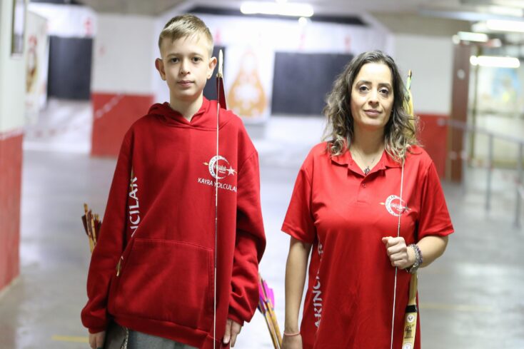 Özel bir fizik tedavi ve rehabilitasyon merkezinde uzman fizyoterapist olarak görev yapan Senem Çelik (44), Türk tarihine ilgi duyan oğlu Kayra Yolcular'ı (13) okçuluk sporuna yönlendirdi.