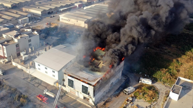 Rüzgarın da etkisiyle hızla büyüyen yangın, Aydın Astim Organize Sanayi Bölgesi’ndeki bir fabrikaya sıçradı. Yangının kontrol altına alınması için ekiplerin müdahalesi sürüyor.
