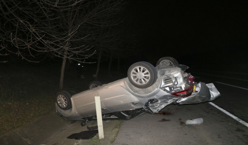 Çarpmanın etkisiyle 34 FF 138 plakalı otomobil takla attı.