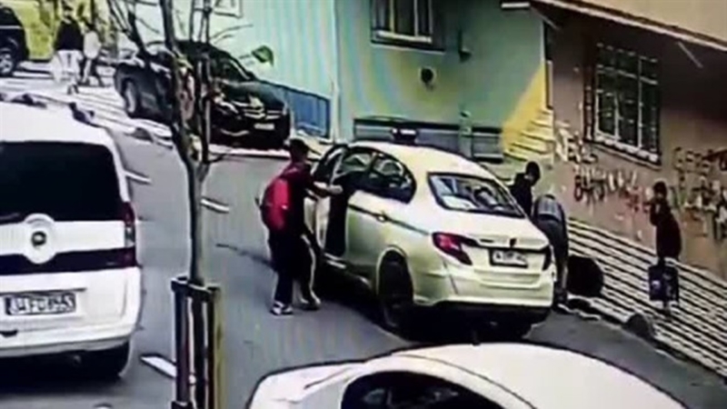 Bu sırada olayı izleyen ve otomobilin hareket etmeye başladığını fark eden başka bir öğrenci ise aracın kapısını açarak el frenini çekti.