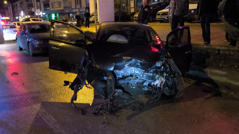 Çarpmanın etkisiyle yoldan çıkan aracın motoru, yaklaşık 20 metre uzağa fırladı.