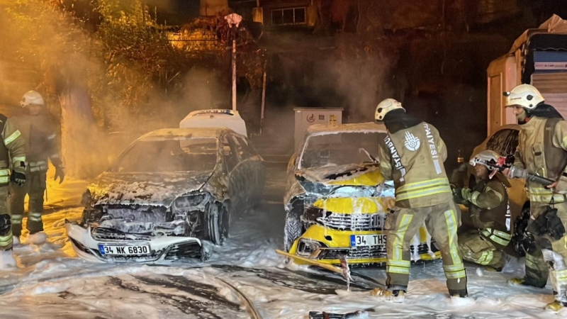 İtfaiye ekiplerinin müdahalesiyle alevler söndürüldü, yangında 2 otomobil kullanılamaz hale geldi.