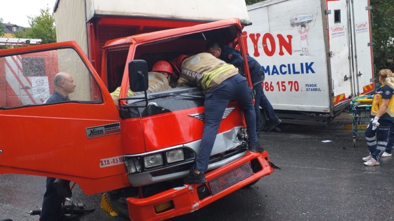 Kamyonet sürücüsü Ayhan U. aracın içinde sıkıştı.