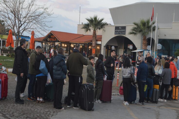 Ramazan Bayramı tatilini Ege Denizi'ndeki Yunan adalarında geçirmek isteyen Türk turistler, Balıkesir'in Ayvalık ilçesindeki deniz hudut kapısında kuyruk oluşturdu.