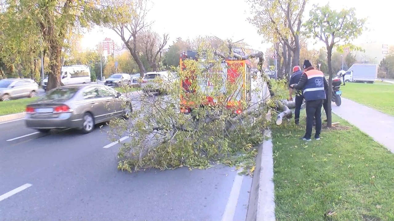 Ağacın iki şeridini kapattığı yolda trafik yoğunluğu oluşurken, bölgeye polis ve belediye ekipleri sevk edildi.
