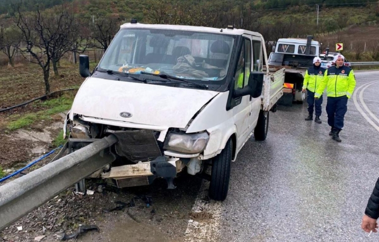 Taraklı-Geyve kara yolu Hırka Mahallesi mevkisinde, şoförünün ismi öğrenilemeyen 61 NC 941 plakalı kamyonet, denetimden çıkarak bariyere çarptı.