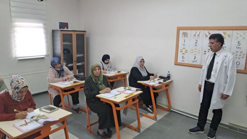 Halk Eğitim Merkezi öğreticisi Orhan Elmas, AA muhabirine, iki kademeden oluşan kursta katılımcılara okuma yazma dersleri verdiklerini söyledi.