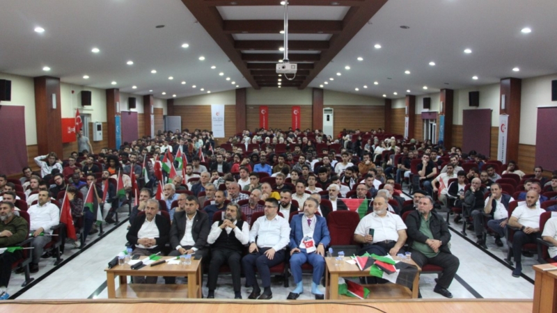 Necip Fazıl Kısakürek Erkek Öğrenci Yurdu Konferans Salonu’ndaki konferansa katılan gazeteci yazar Bülent Deniz, Gazze ve İsrail arasında yaşanan son gelişmelere ilişkin değerlendirmelerde bulundu.