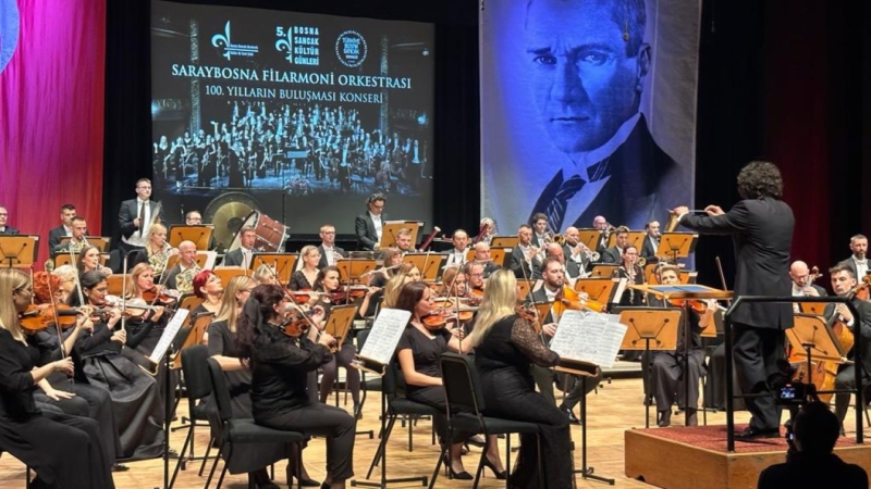 Kendi kuşağının önde gelen şeflerinden Mihnea Ignat yönetimindeki 78 müzisyenin yer aldığı konserde, Saraybosna Filarmoni Orkestrası hem kendisinin hem de Türkiye Cumhuriyeti’nin 100. yılını kutladı.