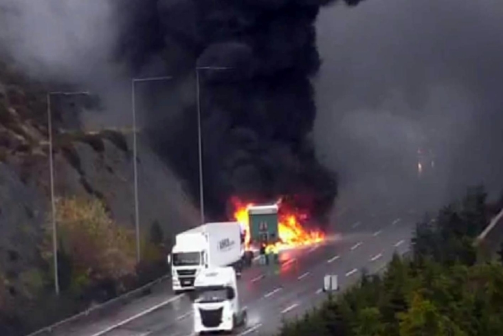 Kuzey Marmara Otoyolu'nun Sarıyer kesiminde plastik ham madde yüklü tırda çıkan yangın söndürüldü.