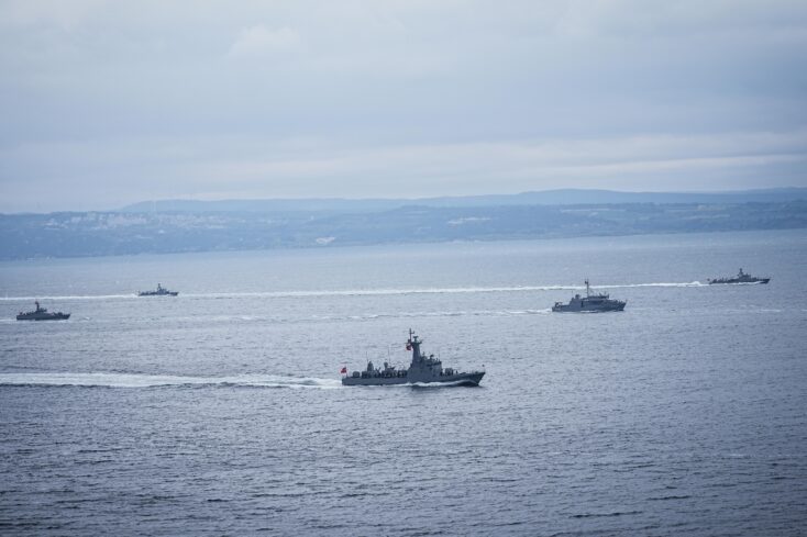 Törende, Deniz Kuvvetleri Komutanlığına ait unsurlar da Çanakkale Boğazı'nda resmi geçit yaptı. Geçit törenini Yılmaz ile protokol üyeleri de izledi.