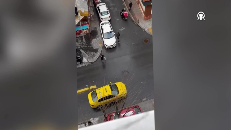 Şişli'de kartopu atan çocukları taksi şoförünün aracıyla kovalaması cep telefonu kamerasınca kaydedildi.