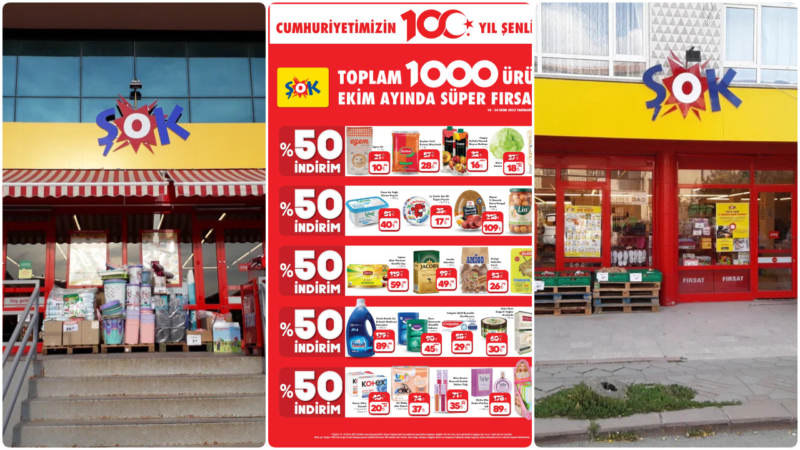 ŞOK marketlerde 18 Ekim tarihinden itibaren Egen Undan Başhan Yerli Kırmızı Mercimeğe, Atom Salatadan Pınar Az Yağlı Süzme Peynire, Maret V. Boncuk Dana Kangal Sucuktan, Lio Çizik Yeşil Zeytine kadar birçok üründe %50 indirim fırsatları göze çarpıyor.
