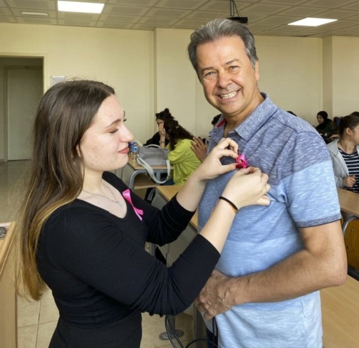 Bu kapsamda kıyafetlerine pembe kurdele takan personel ve öğrenciler, meme kanserinde erken tanı ve tedavinin önemine dikkati çekti.