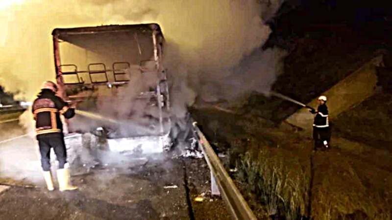 Balıkesir’in Susurluk ilçesinde alev alan yolcu otobüsündeki yangın itfaiye ekiplerinin müdahalesi sonucu kısa sürede kontrol altına alınarak söndürüldü.