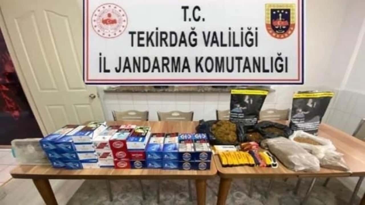 Tekirdağ İl Jandarma Komutanlığı ekipleri, piyasaya kaçak tütünle doldurulmuş boş makaronların sürüldüğü bilgisi üzerine Süleymanpaşa ve Çerkezköy ilçelerinde belirlenen adreslerde ve bir otomobilde arama gerçekleştirdi.