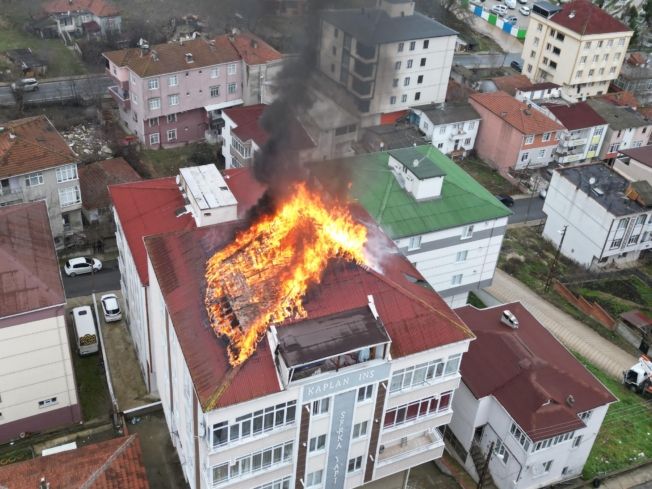 İstasyon Mahallesi’nde bir apartmanın çatı katında henüz belirlenemeyen nedenle yangın çıktı.