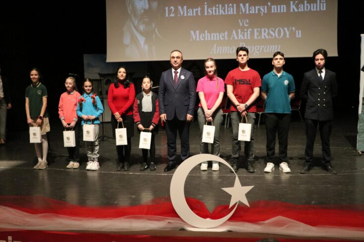 Programda, il genelinde okullarda düzenlenen şiir, kompozisyon ve İstiklal Marşı'nı güzel okuma yarışmalarında dereceye giren öğrencilere, Vali Recep Soytürk ve protokol üyeleri tarafından ödül verildi.