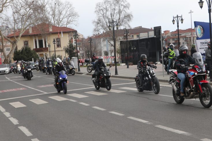 Motosikletliler, Atatürk Caddesi'nden konvoy halinde Tekirdağ Valiliği önüne gelerek, burada saygı duruşunda bulunup, İstiklal Marşı'nı okudu.
