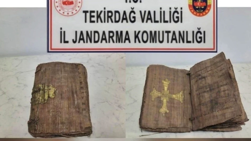 Adreste yapılan aramada, tarihi nitelik taşıdığı değerlendirilen İncil ele geçirildi.