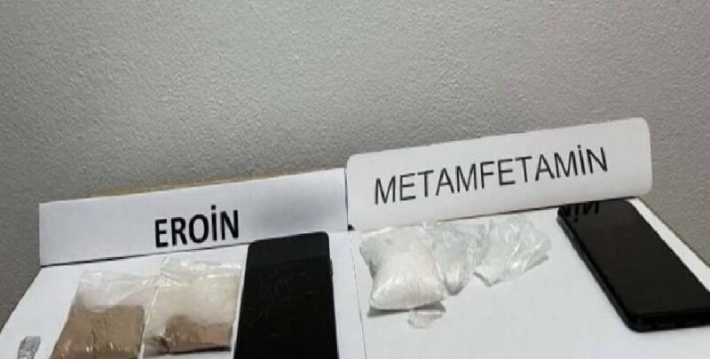 Zanlıların üst aramalarında 110 gram metamfetamin, 38 gram eroin ve 3 hassas terazi ele geçirildi.