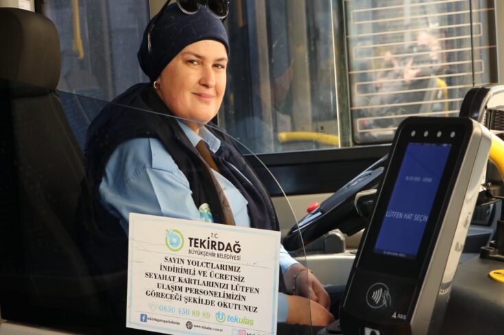 FIRAT ÇAKIR – Tekirdağ'da şehir içi toplu taşımada görev yapan 48 yaşındaki Şenay Kenar, yolcularını duraklarına ulaştırıyor.