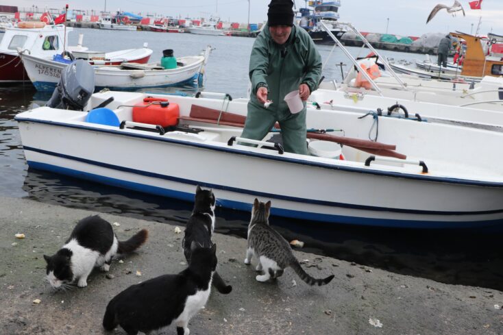 Kedilere yaz kış gözü gibi baktığını ifade eden Saygı, “20 yıldır bu limandayım. Burada zaman geçiriyorum ama kendim amatör olarak 2-3 yıldır tekneyle denize çıkıyorum. Arada ağ atan balıkçı arkadaşlarla da zaman geçirmek için denize gidiyorum. Her gün denize çıkıyorum. Tuttuğum balıkları kooperatife veriyorum ama kedilerin payını her zaman ayırıyorum.” diye konuştu.
