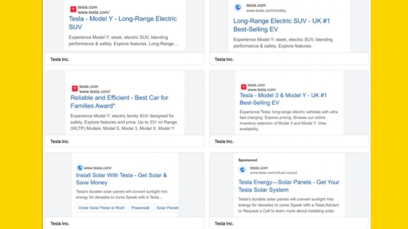 Tüm bu açıklamalardan sonra Tesla’nın kısa süre içinde reklam vermeye başladığı görüldü. İlk kez bazı Google kullanıcılar, arama sonuçlarındaki reklamlardan Tesla’yı fark etti. Google’ın reklam konusundaki şeffaflığı göz önüne alındığında Tesla’nın kesin bir şekilde reklam verdiğini söylemek mümkün.