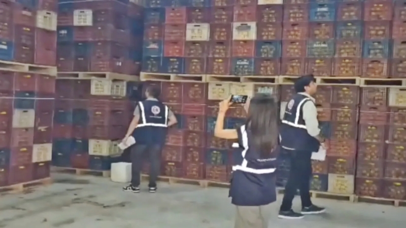 Erdemli ilçesindeki iki depoda yapılan incelemede, HKS’ye kaydı yapılmadığı belirlenen 380 ton limon olduğu görüldü.